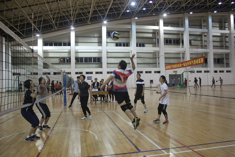 2017年12月1日晚,77779193永利集团气排球协会主办的第一届金杆杯气排球联赛在综合训练馆正式开赛。本次赛事经协会理事会的精心筹备,充分发动广大会员积极参赛,本届联赛共有六支队伍参赛,每队9-10人,通过单循环比赛、半决赛、决赛决出最终的冠亚军。