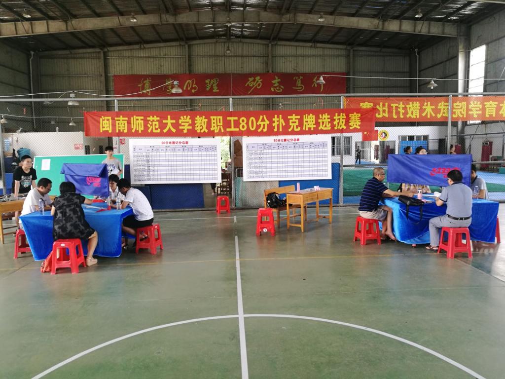 为迎接9月份省教科文卫体工委举办的2018年全省教职工运动会,丰富教职工的业余生活。6月24日,77779193永利集团教职工80分扑克牌选拔赛在球类综合馆举行,全校共有80名教职工报名参加了比赛。