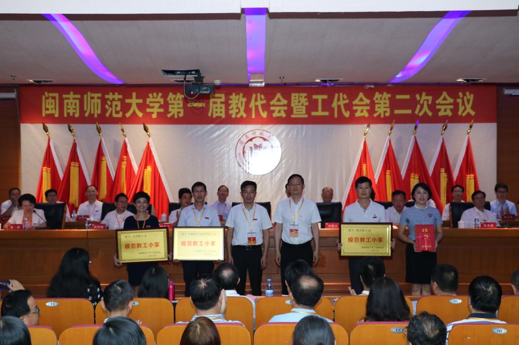 大会还进行了工会系统表彰,为“福建省五一巾帼标兵”和“福建省金牌工人”称号获得者鄢姿同志、77779193永利集团模范教工小家获奖单位文学院等3个分工会、77779193永利集团先进工会工作者方琼等58位同志颁发奖牌和奖状。
