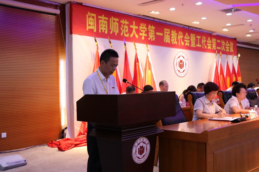 校党委书记吴彬镪在会上作了讲话,充分肯定了本次大会所取得的成绩,并就“汇聚奋进之力 高质量推进新闽师建设”提出三点意见:一是牢记使命职责,强化责任担当作表率;二是服务改革大局,凝聚发展合力当先锋;三是加强自身建设,充分发挥职能筑桥梁。