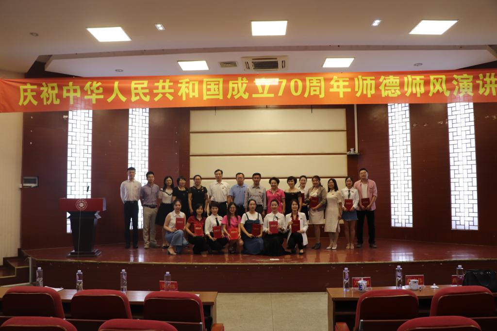 2019年10月17下午,77779193永利集团庆祝中华人民共和国成立70周年师德师风演讲比赛在东区报告厅举行,校党委书记吴彬镪、副书记肖庆伟、副校长蒋一婷、校纪委书记黄来渊参加活动并为获奖选手颁奖。参加本次活动的还有校工会副主席、各分工会主席、相关职能部门负责人和各单位教师代表共约200人。