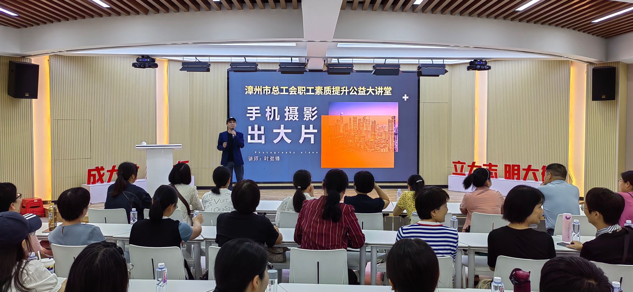 10月10日下午,为深入学习贯彻党的二十届三中全会精神,漳州市总工会“2024年职工素质提升公益大讲堂”活动讲座之一《手机摄影出大片》在我校达理学生活动中心三楼多功能厅顺利举办。活动由校工会承办,我校教职工手机摄影爱好者到场聆听了讲座。