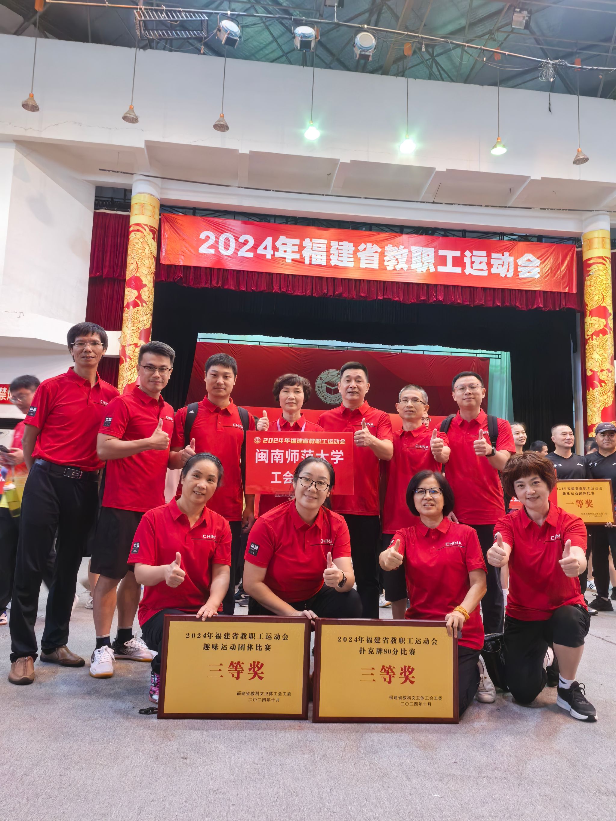 10月18-20日,校工会常务副主席陈惠卿带领我校教职工赴莆田参加2024年福建省教职工运动会。比赛分设乒乓球、扑克牌80分和趣味运动三个项目。