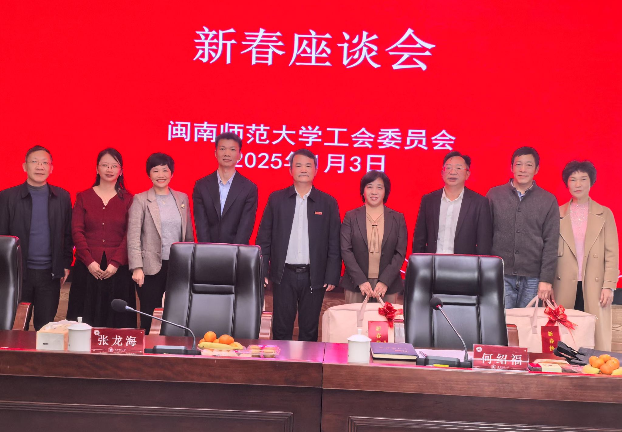 1月3日下午,我校工会在科技信息楼1607会议室召开优秀教师新春座谈会。校党委副书记、校长张龙海,党委常委、副校长何绍福出席。