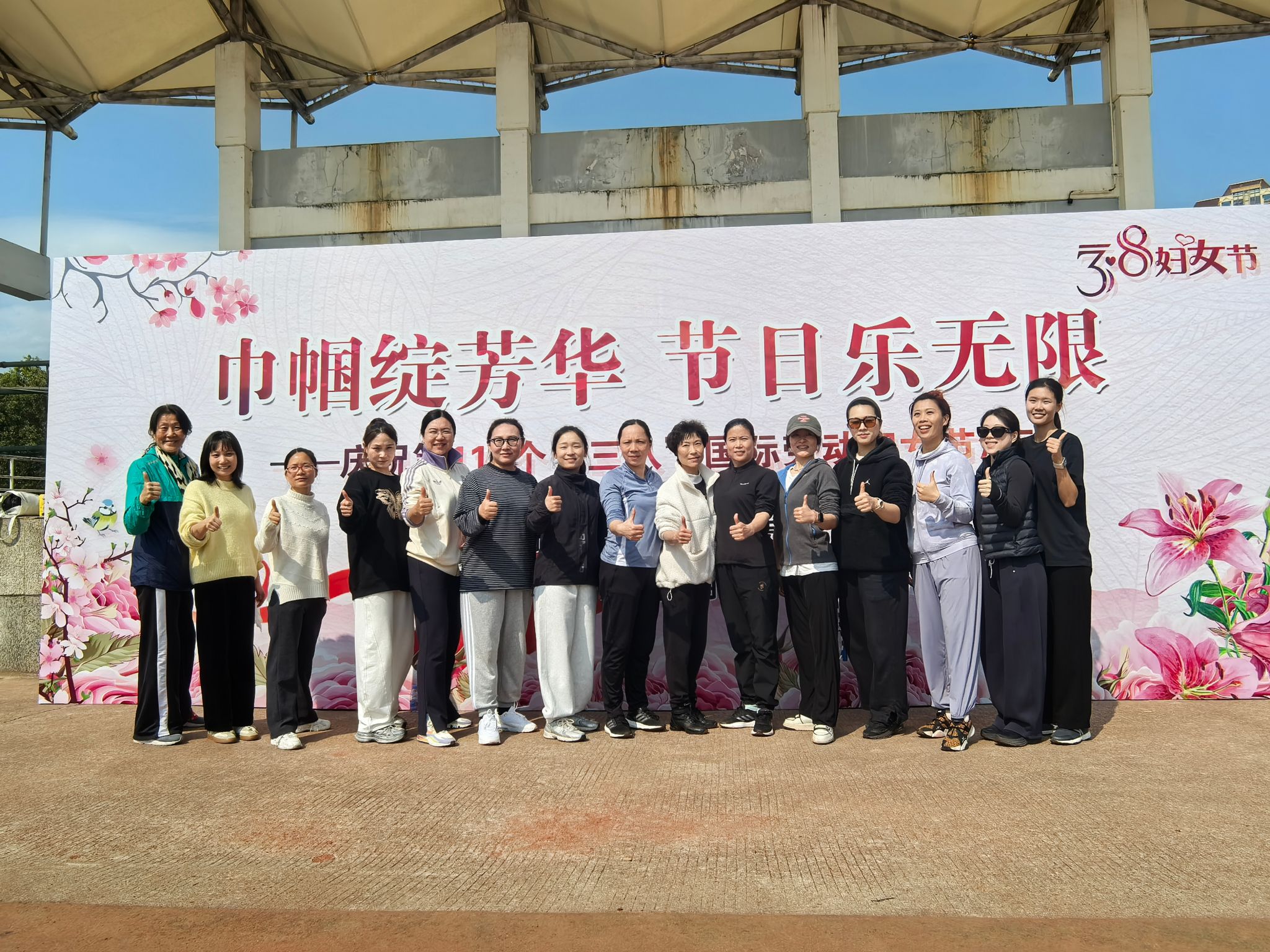 3月8日上午,我校女教职工团体趣味运动比赛在西区田径运动场举行。共有来自各二级工会的13支代表队、约200名运动员参加。校党委常委、副校长何绍福及校工会相关领导亲临现场为运动员加油助威。