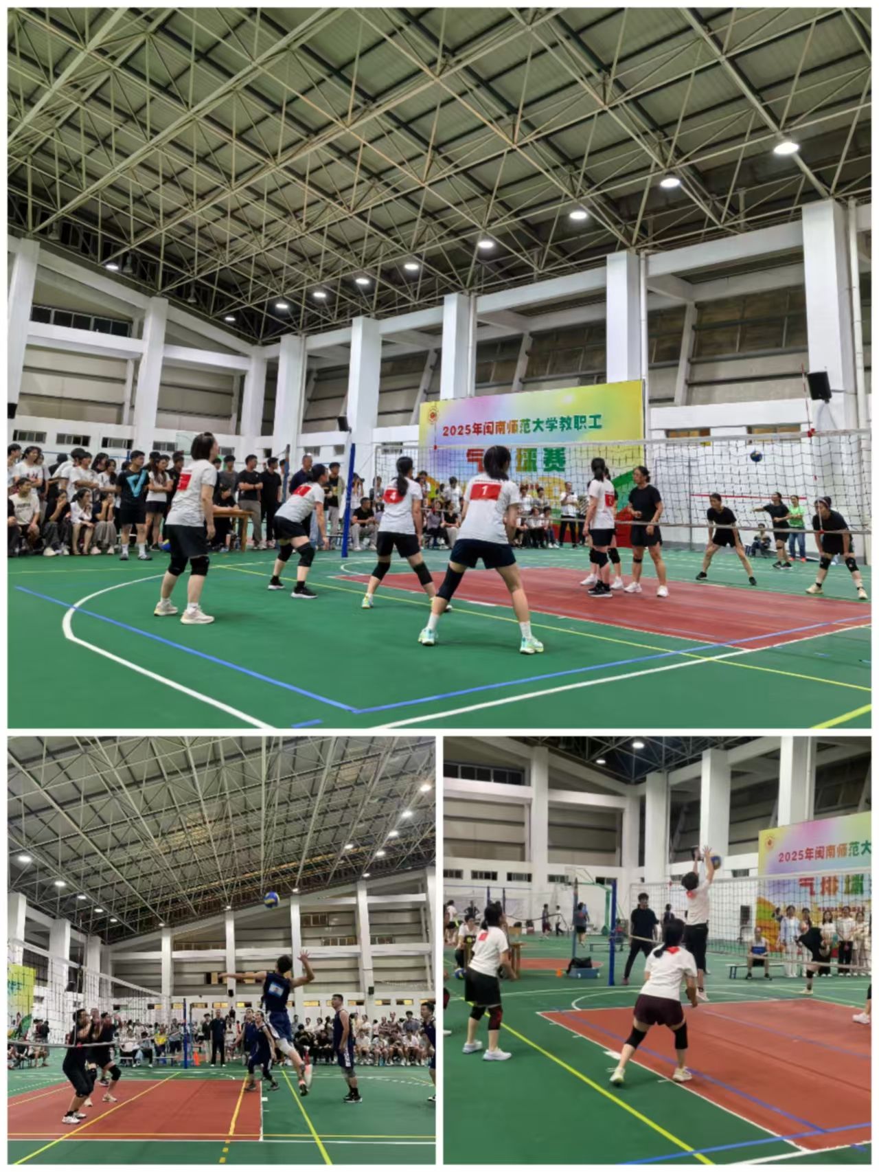 赛场上,队员们精神抖擞、配合默契,发球、接球、传球、扣杀、拦网等动作行云流水,每一次精彩攻防都引来场边观众阵阵喝彩。大家本着 “友谊第一、比赛第二” 的原则,在赛场中切磋技艺、增进情谊,充分展现了我校教职工昂扬向上、乐于拼搏的良好精神风貌。赛场边,啦啦队热情高涨,呐喊声、加油声此起彼伏,为比赛增添了浓厚的竞技氛围。裁判们恪尽职守、公正执裁,保障了比赛的顺利进行。经过多轮激烈角逐,最终机关第三工会代表队、机关第一工会代表队、生物与科学技术学院工会代表队分获男子组冠、亚、季军,体育学院工会代表队、马克思主义学院工会代表队、商学院工会代表队分获女子组冠、亚、季军。